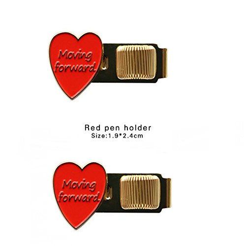 Mandydov 2-Pack Moving Forward Heart Metal Pen Holder For Notebook (red)