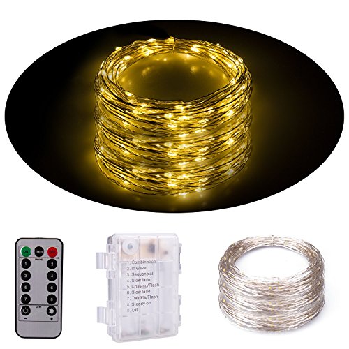 Senbao Dimmable Starry String Lights, 33 ft, Copper Wire,8 Modes Starry Fairy String Lights Battery Powered with Remote Control (Warm white)