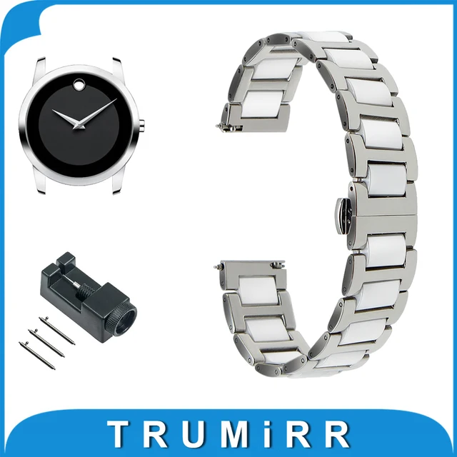 | [해외] 18 미리메터 20 미리메터 22 미리메터 세라믹 + 스테인레스 스틸 시계 밴드 movado butterfly 버클 스트랩 빠른 릴리스 손목 벨트 팔찌 + 도구 |