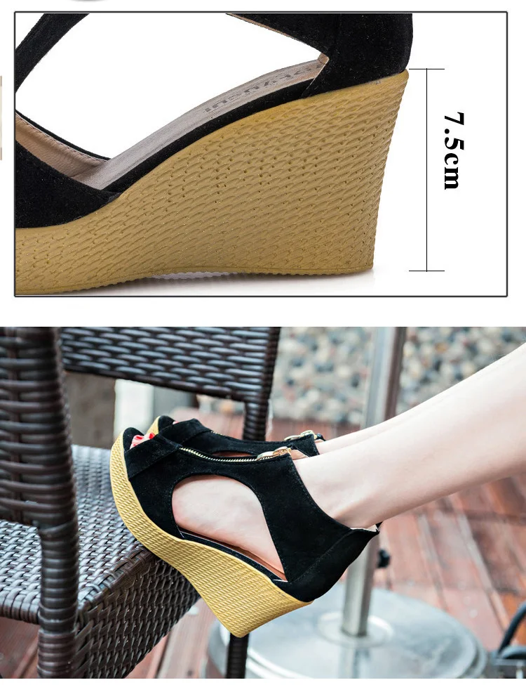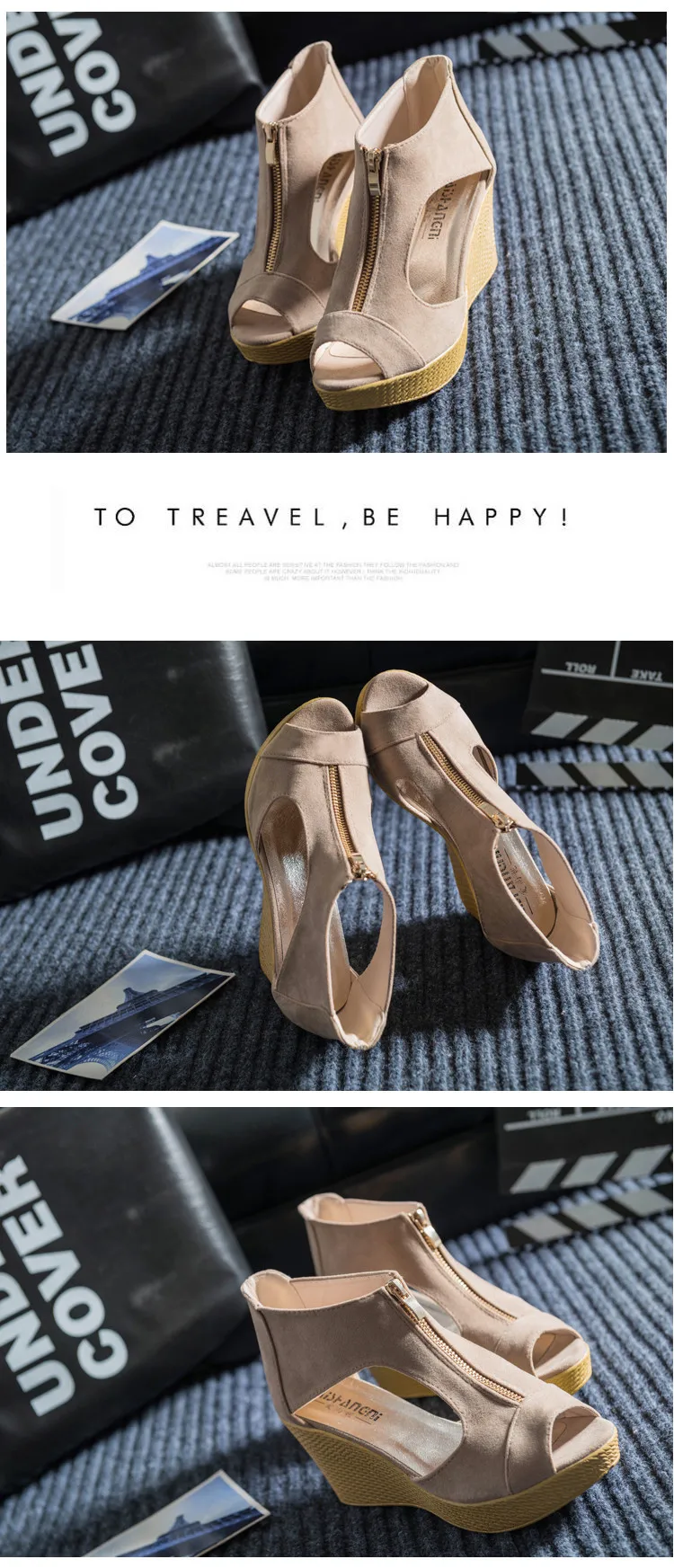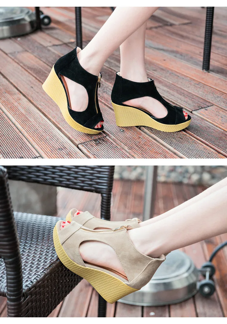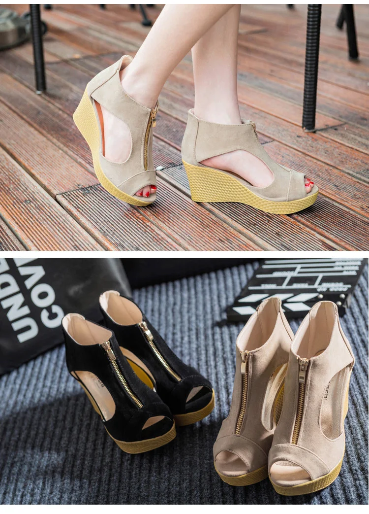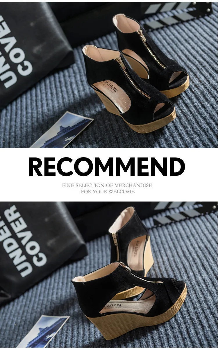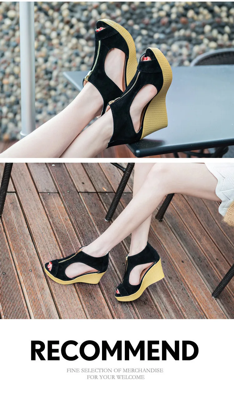 women wedges platform shoes summer:summer vintage heeled Peep Toe