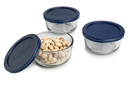Anchor Hocking 2-Cup Round Food Storage Containers with Blue Plastic Lids, Set of 3