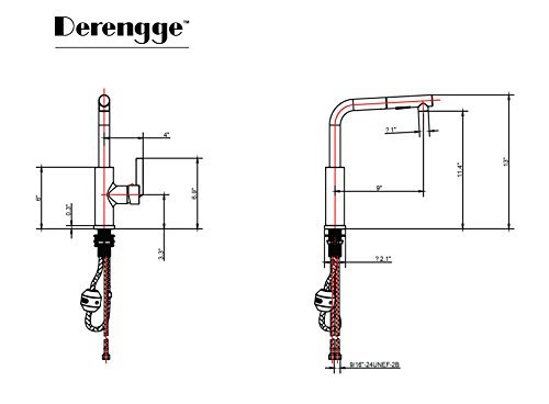 Derengge KF-9001-SS Single Handle Pull-out 1 Hole Kitchen Faucet cUPC NSF AB1953 Lead Free Brush Nickel