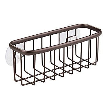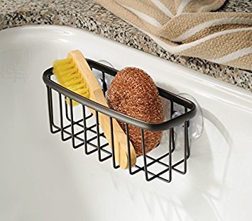 mDesign Kitchen Sink Suction Holder for Sponges, Scrub Brushes, Soap - Pack of 2, Bronze