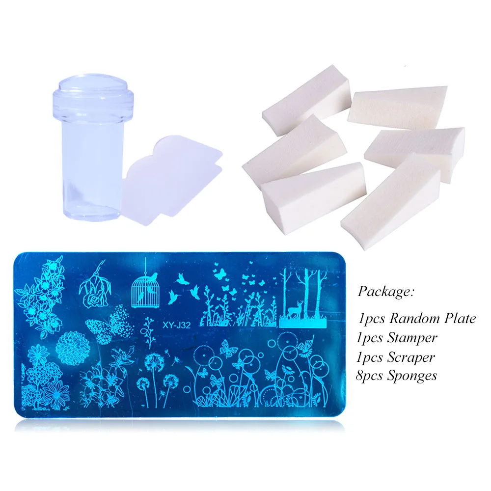 Package: Random 1pcs plate, 1pcs Stamper,1pcs Scraper, 8pcs Sponges