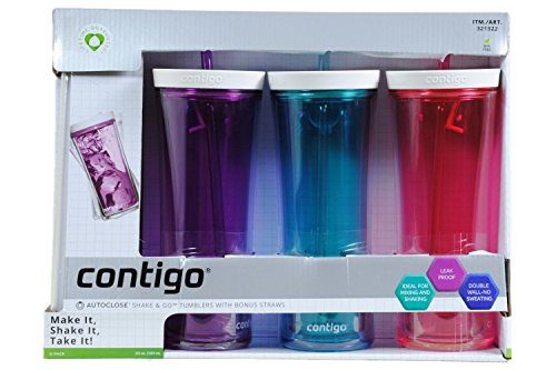 Contigo 20oz Shake & Go Tumblers with Bonus Straws, 3-Pack (Radiant Orchid, Surf & Watermelon)