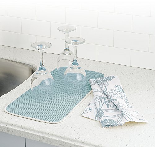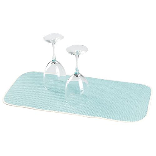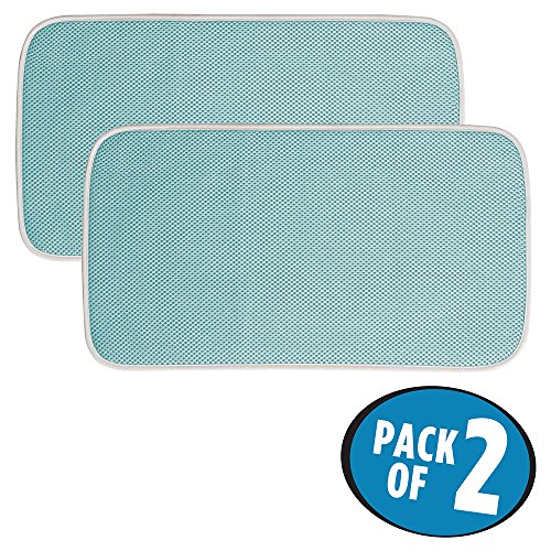 mDesign Kitchen Countertop Absorbent Dish Drying Mat - Pack of 2, Mini, Aqua Blue/Ivory
