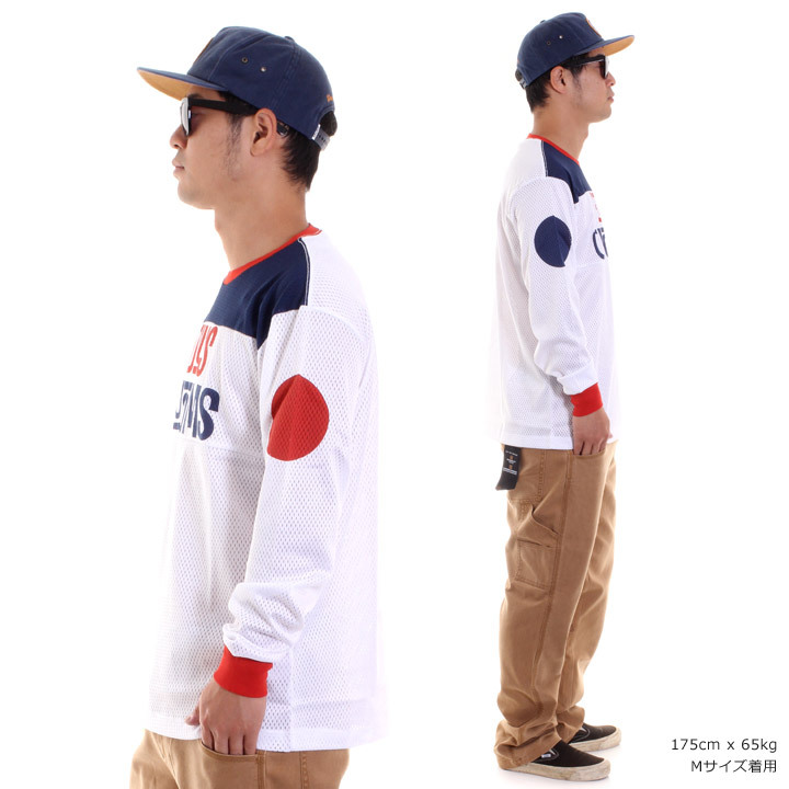 メッシュボディにトリコロールのカラーブロックが新鮮なMOTOジャージです。フロントのダイナミックにプリントされたポップなロゴが目を引き、両袖の円形のカラーがアクセントに◎風通しが良く、サラッとした着心地が初秋や春先にマッチ。スポーツMIXコーデはもちろん、MOTO乗りにオススメのアイテムです。