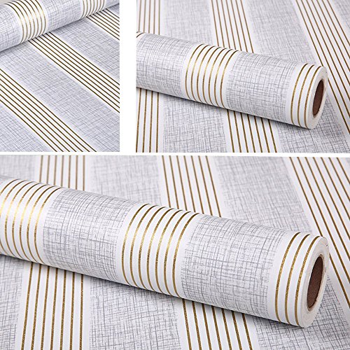 HOYOYO 17x78 Inches Self-Adhesive Shelf Liner, Moisture Proof Drawer Paper Shelf Liner Mildew Proof Antifouling Contact Paper,Grey Stripe