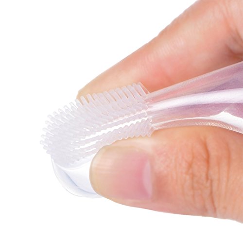 APPROPRIATE SIZE: The diameter of this toothbrush is 0.9", about 2.1" long, and the brush part is 0.86". It's very suitable for adult fingers of all sizes, and perfect size for baby's mouth. It can be used repeatedly and suitable for 0 - 24 months baby.