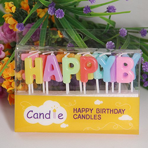 Party Time Molded Letter Birthday celebration Candles, Pack of 13, Multi Primary , 3" Wax, plastic stem