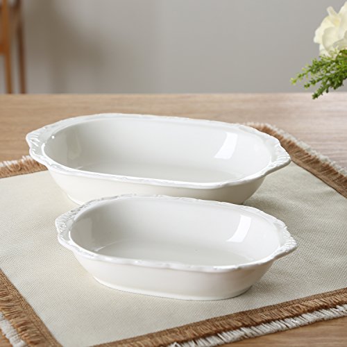 SOLECASA 8"&10" Floral Porcelain Oblong Bakeware Ceramic Dinner Oval Serving Baking Roasting Dish, Mixing Set of 2, White