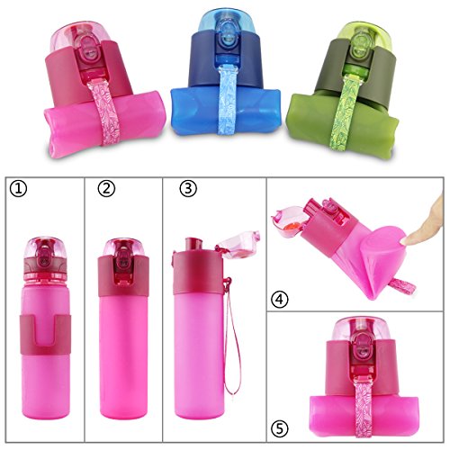 Yilove BPA-Free 17 Ounce Foldable Magic Sports Water Bottle with Flip Top Lid,Fashion Roll Up Silicone Bottle-Casual type(Rose red)