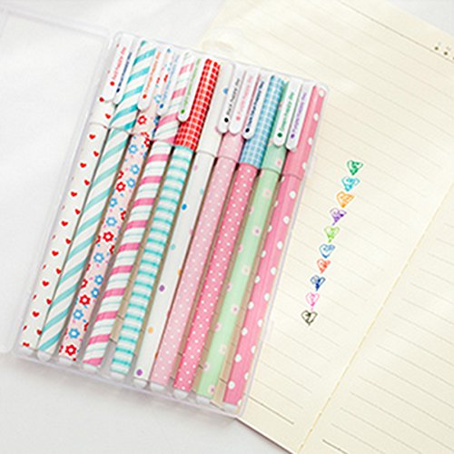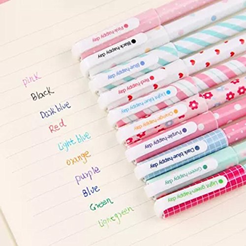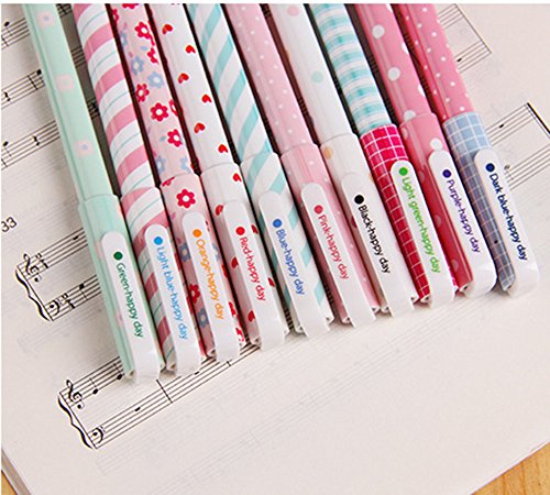 -. Feature : Material: Plastic; Ink Color: 10 Color / Writing point:0.38mm / Pttern(assorted style):floral/annimal/Cartoon love/Love dots / Package include 10 pcs pens / Multicolor and provides a smooth writing experience similar to a roller ball pen with the durability of a ballpoint pen