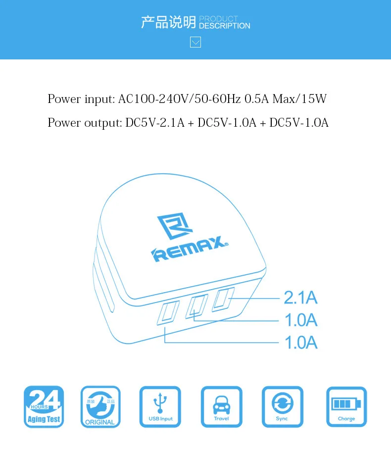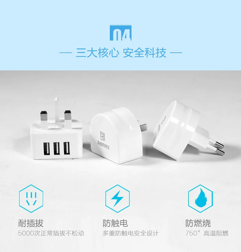 REMAX 3 USB EU / USA / UK Plug Mobile Charger for iPad iPhone Samsung Huawei Xiaomi Vivo Letv 2.1A Travel Power Adapter Fast Charging