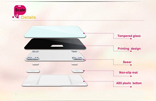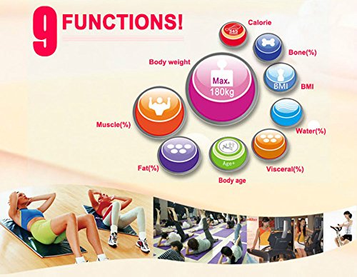 - Measurements: Body Weight, Body Water, Body Fat, BMI, BMR(KCAL), Muscle Mass, Bone Mass, Body age and Visceral Fat.(scale only show weight on the screen, other information shows on app).