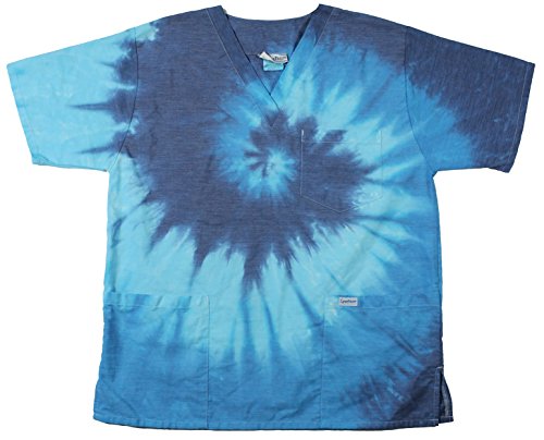Bightside Unisex 3-Pocket Tie-Dye Scrub Top - Blue