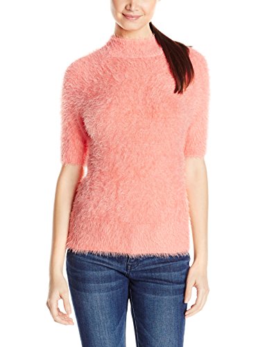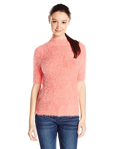 Short sleeve mock neck pullover in super soft eyelash yarn. Great layering piece