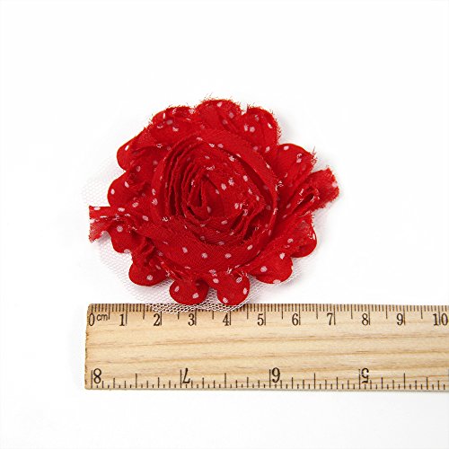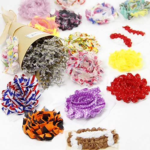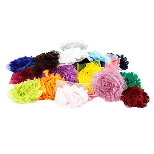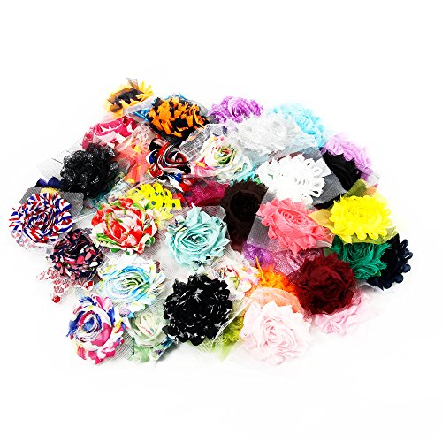Chiffon Shabby Roses Flowers -50 pieces- for DIY Crafts Hair Band Baby Hair Bows - Solids and Prints Included - Assorted Color Mixed (50 pcs)