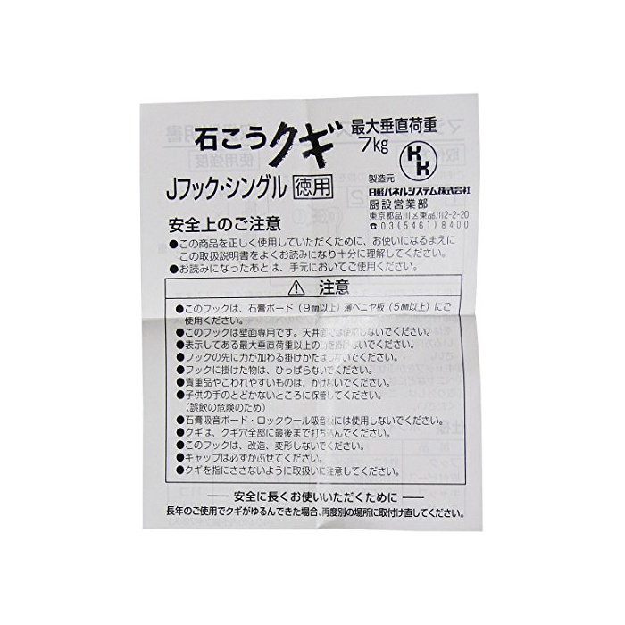 벽전용의 훅입니다.천정면에서는 사용 하지 마십시오.