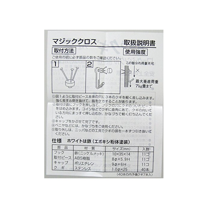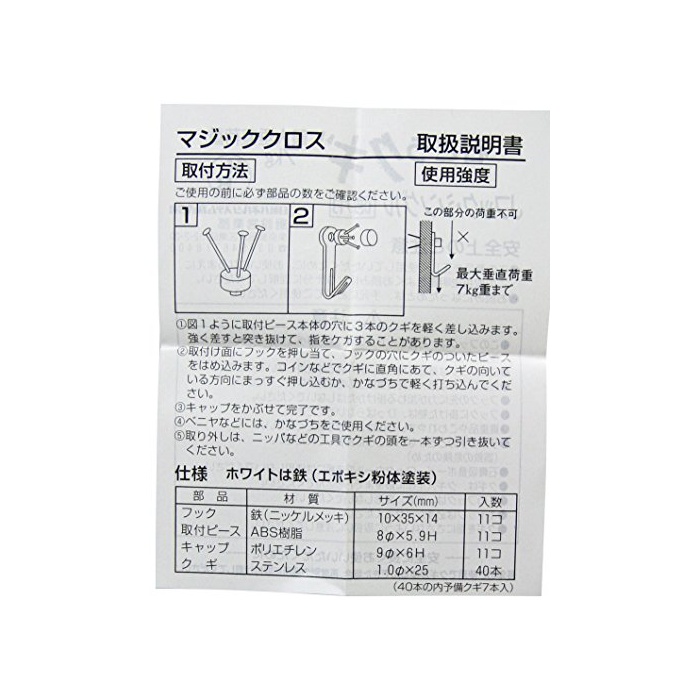 재질:훅철(니켈 도금) 캡 폴리에틸렌 설치 피스ABS수지 못 스테인레스