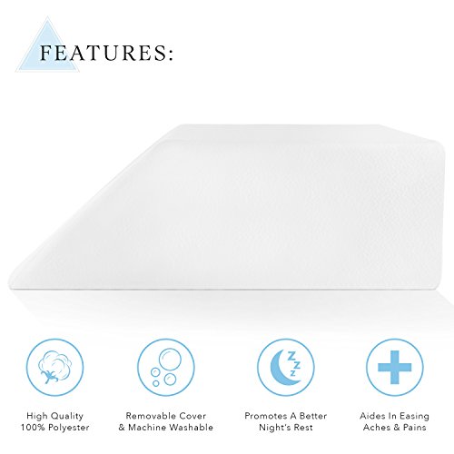 This pillow is covered in a lush microfiber non-slip cover that will allow you to rest easy for extended periods of time. An extra-wide platform allows for both legs to rest comfortably for healing, sleeping, and relaxation. This pillow reduces swelling by improving circulation and lymphatic flow. Designed to fit all heights, shapes, and sizes! The removable microfiber non-slip cover is machine washable for easy care. Stays pristine without expensive cleaning bills!