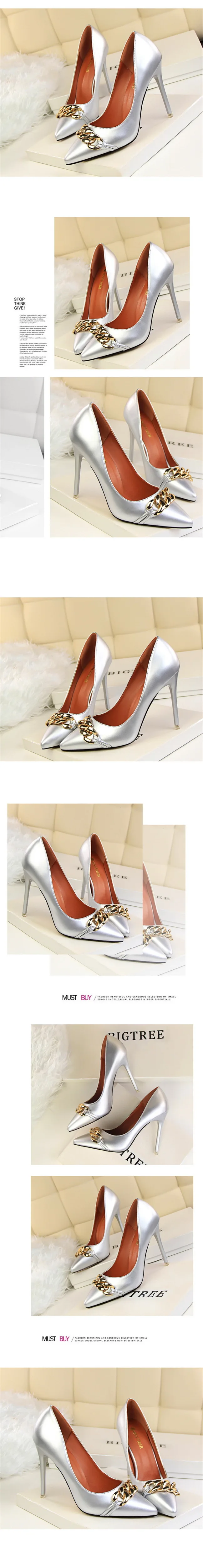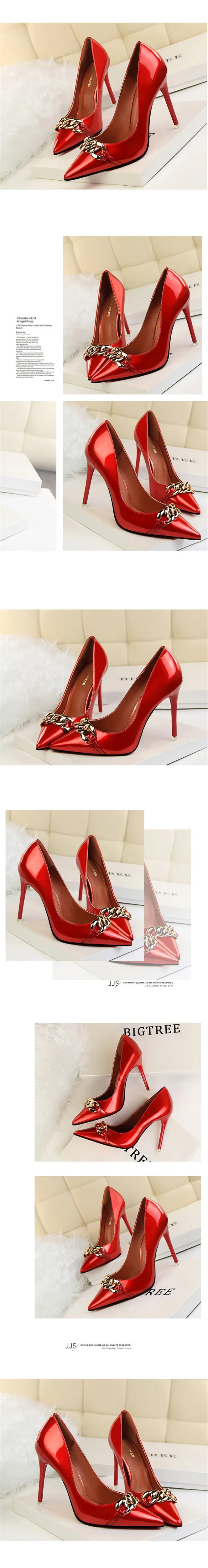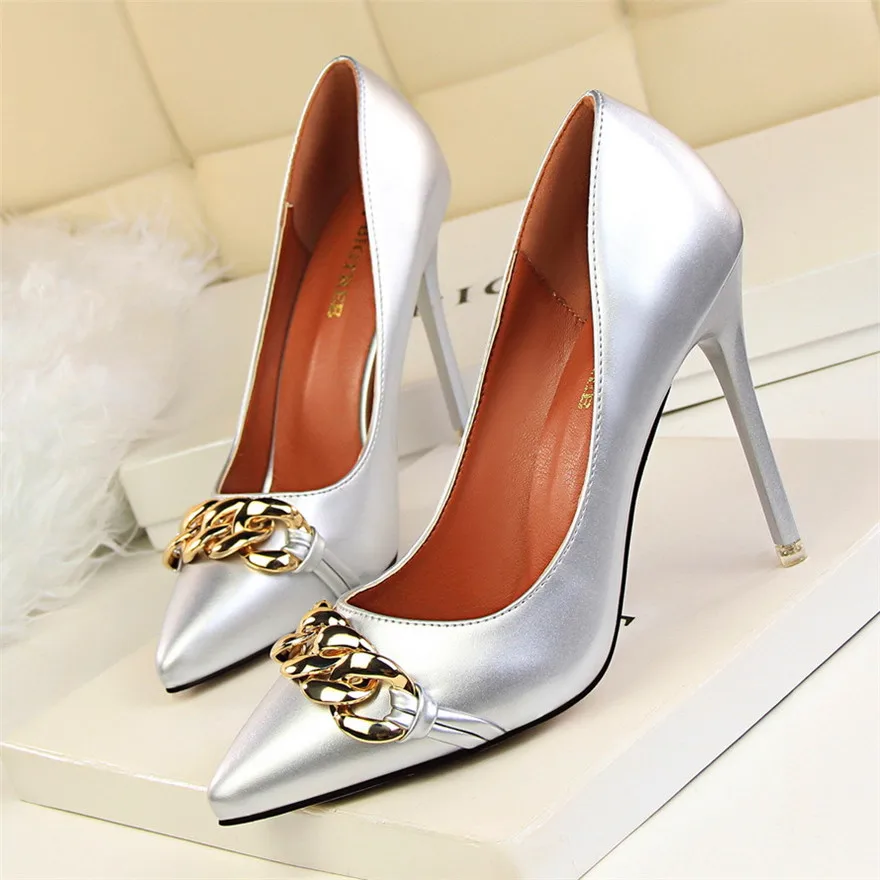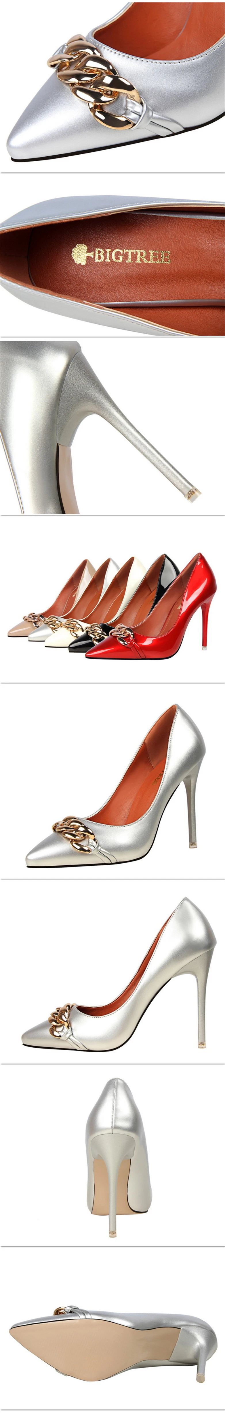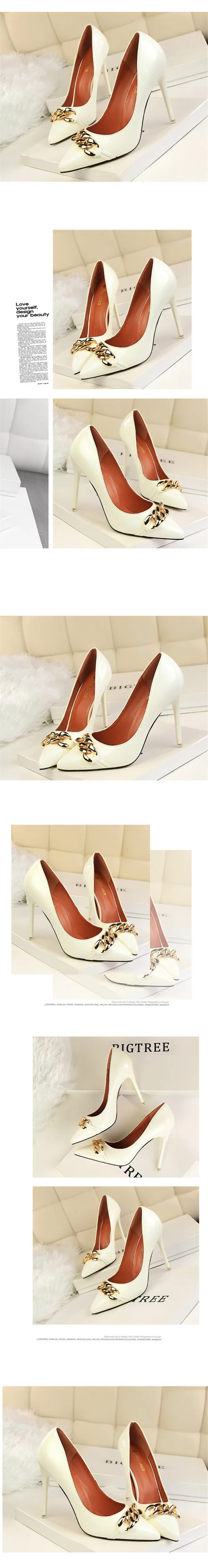 Item:Women's Pointed Toe Patent Leather Fashion Metal Chain Shallow Shoes
