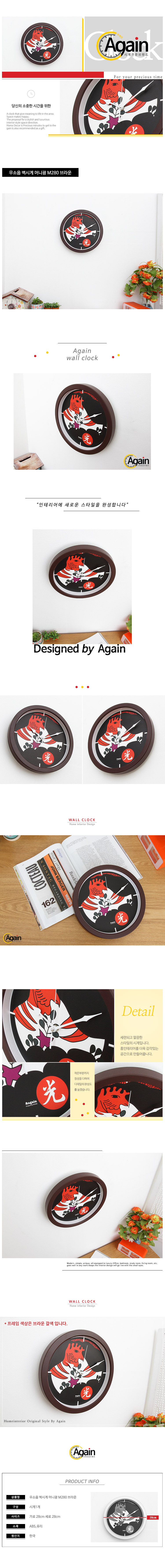 - 품명 및 모델명무소음 벽시계 머니광 M280 브라운