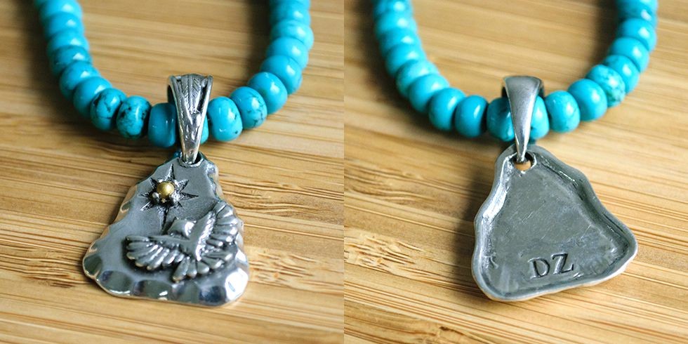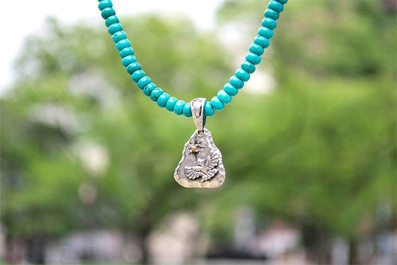 ペンダントトップはイーグルが施されています。ブラスで作られたモチーフがイーグルの隣にほどこされており、珍しいデザインとなっております。