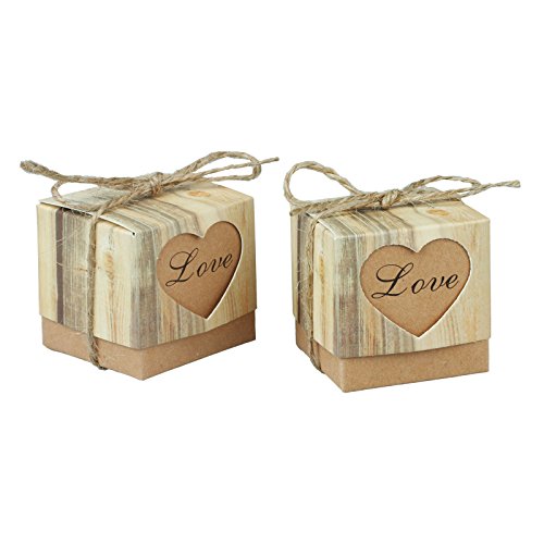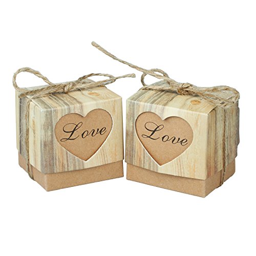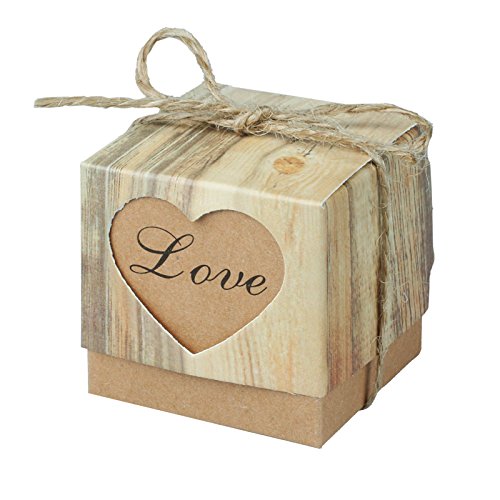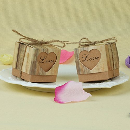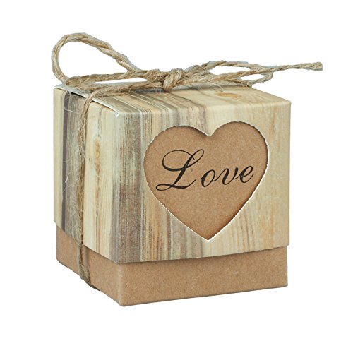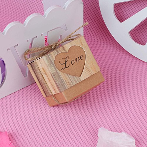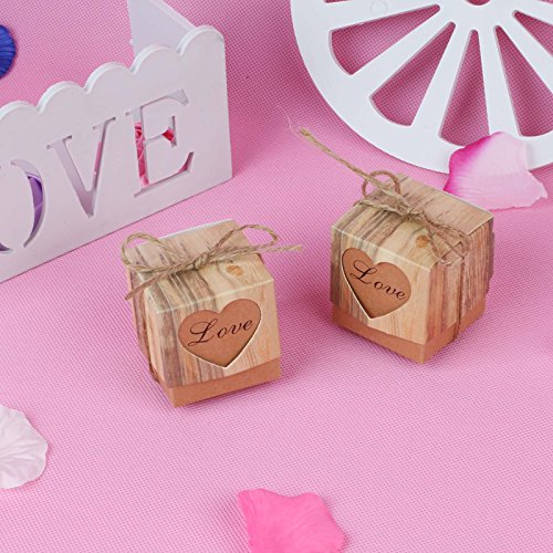 vLoveLife 50pcs Cute LOVE Heart Favor Box Kraft Paper Candy Boxes Gift Boxes + 50pcs Burlap Jute Shabby Chic Twines Wedding Party Favor Favours 5cm x 5cm x 5cm