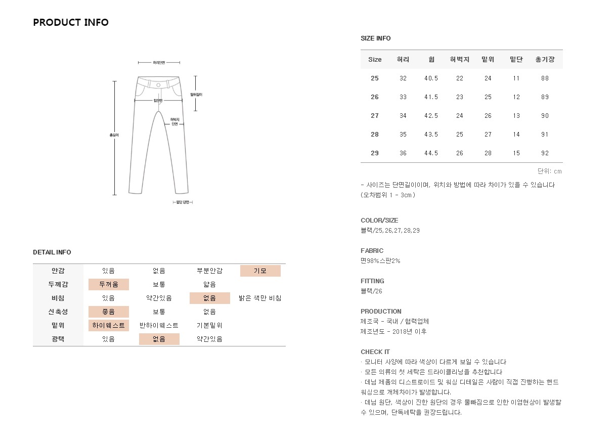 모델은 평소 26사이즈를 입으며, 슬림한 핏감이 연출되었답니다