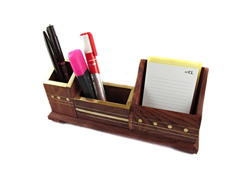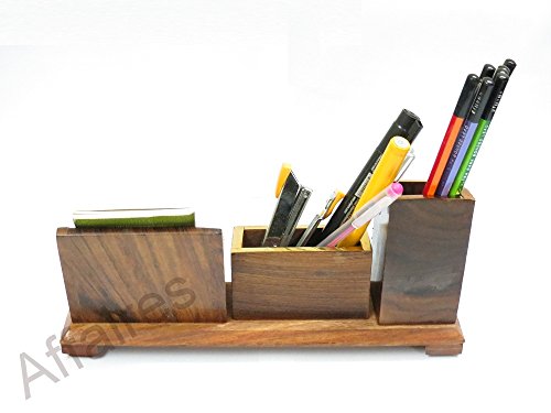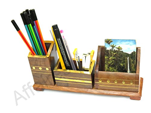 3 Compartment Affaires Pen / Pencil Holder Wood Mesh Design for Desk, Office, and Home | Handmade Stand | Table Accessories Christmas Gift/ Birthday by Affaires W-40201