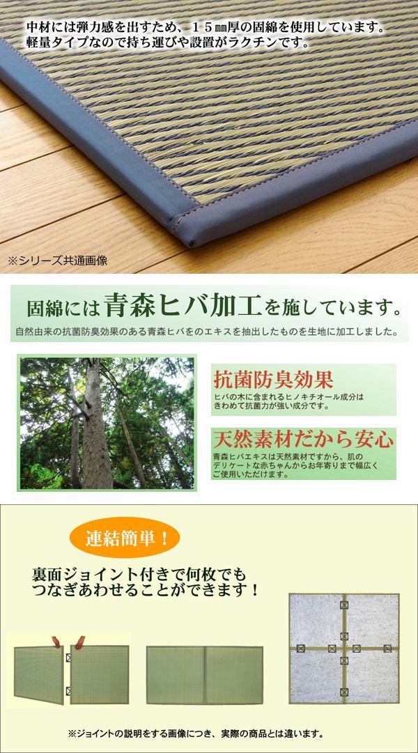 fk094igrjsカジュアルな市松柄のユニット畳のセットです床に置くだけで和のスペースが出来上がります サイズ 82×82×1.7cm(1枚) 個装サイズ:83×83×8cm 重量 個装重量:7400g 素材・材質 表地:い草 中材:ヒバ固綿15mm 縁:PP・PE 付属品 連結用ジョイント×8 生産国 日本(い草:中国、最終加工:日本) 軽量タイプで簡単設置 カジュアルな市松柄のユニット畳のセットです床に置くだけで和のスペースが出来上がります