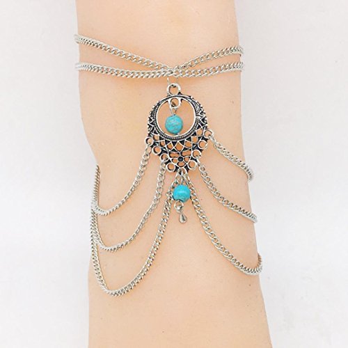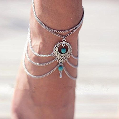 -. Title : Susenstone Vintage Bohemian Hollow Out Tassels Multilayer Turquoise Anklet