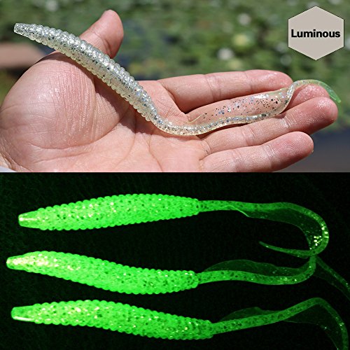 -. Binding : Misc. -. Brand : Sougayilang -. Feature : This power ribbon tail worms is ideal for all saltwater species and other predator species,this ribbon tail worms holographic inserts for a life like action and appearance. / The extra large swirl tail swims and moves with the slightest twitch of the rod tip,Lively action gives a lifelike presentation. / Scent and flavor impregnated into baits is tasted by fish upon biting bait. / Made using the highest quality materials,Engineered to help anglers catch more fish. / Replicates trout-attracting features of small worms and other forage,Can be used in freshwater for giant largemouth bass. -. IsAutographed : 0 -. IsMemorabilia : 0 -. Label : Sougayilang -. Manufacturer : Sougayilang -. PackageQuantity : 12 -. ProductGroup : Sports -. ProductTypeName : SPORTING_GOODS -. Publisher : Sougayilang -. Studio : Sougayilang -. Title : Sougayilang Fishing Lures Bass Worm Bait 12PCS Grubs Lures for Saltwater Freshwater Trout Bass Fishing