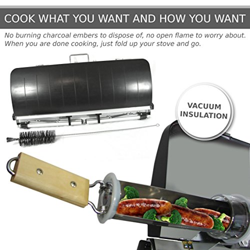 FUEL FREE AND CLEAN: No burning charcoal to dispose of, no open flame to worry about. When you are done cooking, just fold up your stove and go.