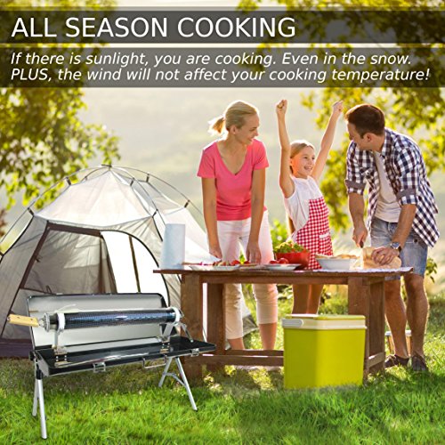 FAST AND FUN: You will cook a meal in as little as 20 minutes, utilizing every drop of sunshine. KEEPS FOOD HOT FOR HOURS. Our evacuated tube technology WITH thermometer is in essence a giant thermos.