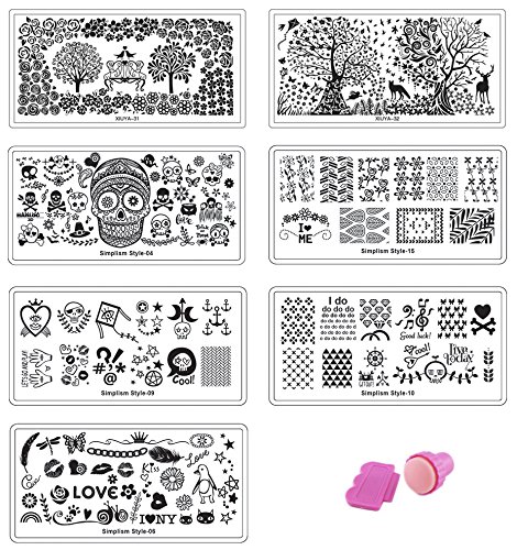 Each plate measures about 2.5" x 2.5" (6cm x 6cm) with a protective nylon screen. Each plate is attached to PVC backing for easy and comfortable handling and protected by a protective nylon screen. All image plates are made from high grade stainless steel. The collection comes with 24 large plates, total of 200 IMAGES! Use this variety pack to create show-stopping nails! Try it and we are so confident that you will like it! Ship From USA.Feature