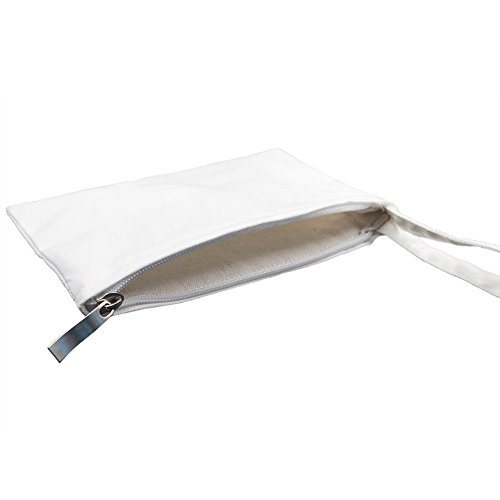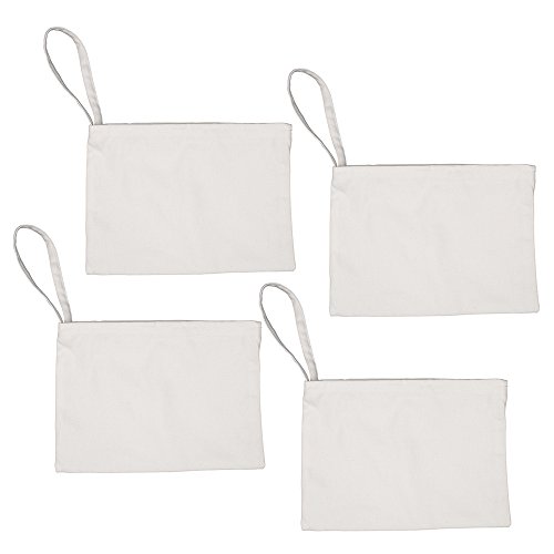 Aspire 4PCS Cotton Canvas Zipper Bag with Wristlet, 12oz Cosmetic Makeup Bag, 11" x 8"-White