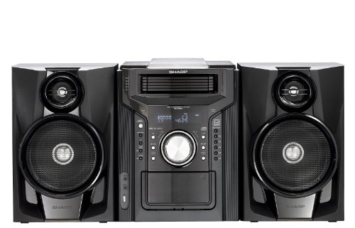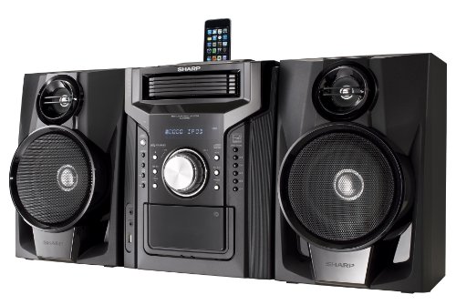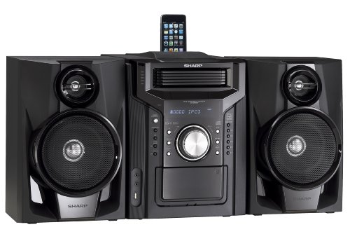 Mini Audio System with iPhone and iPod docking, 240 watts, subwoofer, shelf system, 5 CD Player and cassette, 1-800-BE-SHARP