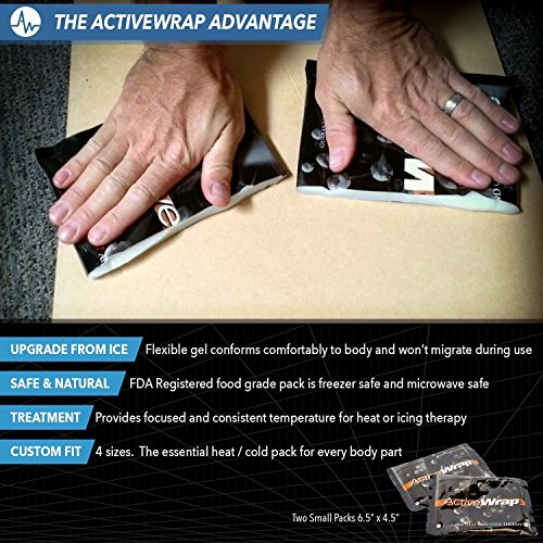 ActiveWrap Hand or Wrist Wrap Complete Wrist|Hand Heat and Ice Wrap System includes our active medical plushTM compression support and two reusable heat and ice packs . Our premium grade adjustable Hand and Wrist Thermal Support received theION Sports Medicine Product of the Year. The Wrist Ice Wrap and Heat Wrap uses the same great patented design you've come to rely on from ActiveWrap. Excellent for ergonomic positioning for occupational activities such as cpu usage. Designed to be compatible with the ActiveWrap small recharge heat and ice packs (Item bawpoo5) for optimal versatility and value for any athlete or patient. You chose your exact set up using one or both of the included heat and ice packs. Use without thermal inserts to provide therapeutic warmth to the joint. Soft and comfortable for night use as well. Designed for carpal tunnel, wrist sprains, swelling, arthritis, and other hand injuries. Versatile Therapy When You Need It. Continuous no mess cold treatments are readily available by rotating the packs in and out of the wrap as needed. With competitor gel pack designs, pressure forces the gel away, making it impossible to receive a proper cold treatment. ActiveWrap's innovative hot/cold packs stay in place and therapy doesn't push away under pressure. This is a critical upgrade to the marketplace. ActiveWrap's non-migrating heat and ice packs provide interval contrast heat and cold treatments, which are effective in the post-acute phase of injury. No coolers, no chemicals, and no rock hard freezing substitutes just comfort and quality at its finest. Designed in conjunction with orthopedic physicians, physical therapists and backed by top coaches and athletes around the world. Applications: Carpal Tunnel, Wrist Sprains, Arthritis ,Tendinitis, Hand Injuries, Wrist Injuries, Repetitive Strain Injuries. Also can be used for foot injuries to the top aspect of the foot (call for details).Feature