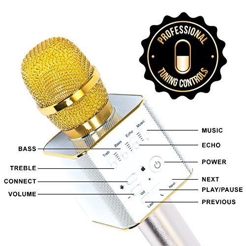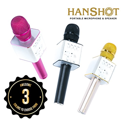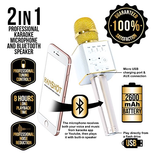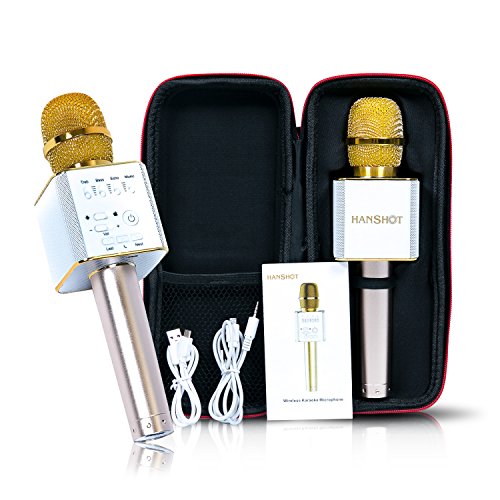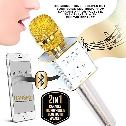 Hanshot Portable Rechargeable Bluetooth Karaoke Microphone with built in Speakers compatible with Karaoke Apps on iOS and Android (Gold)