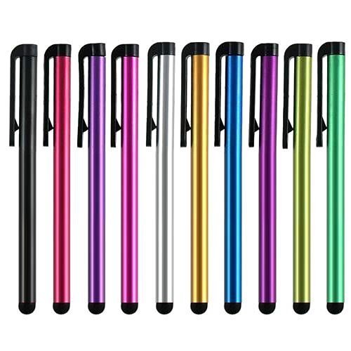 Ideal for tablets and smartphones. These are universal metal touch screen stylus pens for iPads, iPods, iPhones, Android Phones, Android Tablets, Windows Tablets, PCs, Kindles, Nooks or any other touch screen device. Use them anywhere you would use your finger. Clip design, easily clips in your pocket, book, diary, etc. Long pen-size makes it easy to work with. Ultra soft rubber tip won't scratch your screen. Keep your screen free from scratches and fingerprints and avoid hitting more that one button with your fingers.