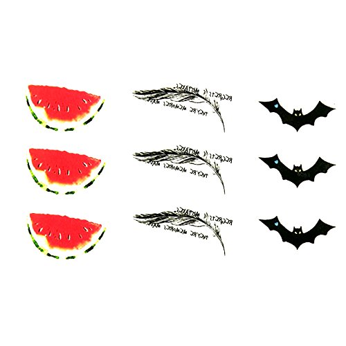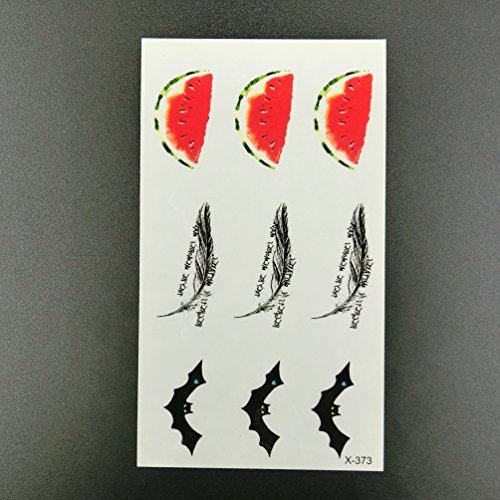 Oottati Small Cute Temporary Tattoo Bat Feather Watermelon (2 Sheets)