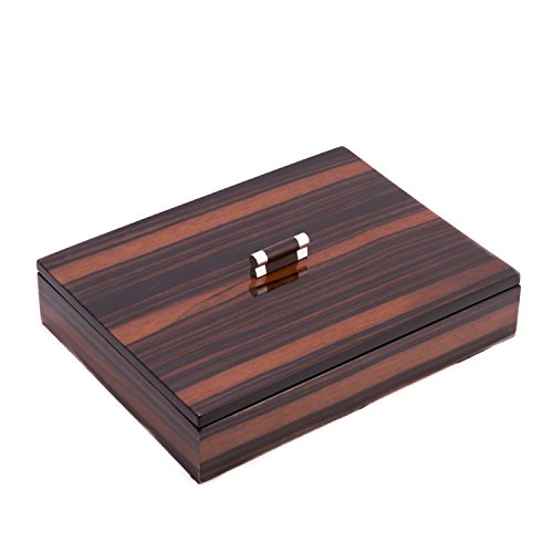 Time Factory AJ-BB667EBN Lacquered Burl Wood Tray with Cover, Ebony