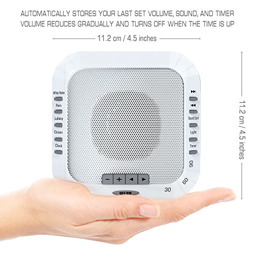 CFS White Noise Machine Physical Dimensions: Noise Machine Weight Approximate: 0.55 pounds Noise Machine Dimensions: 2inches(H), 4.5inches(W), 4.5inches(L)