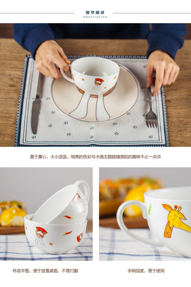早餐杯大号卡通骨瓷杯子陶瓷器麦片杯大容量牛奶杯情侣燕麦咖啡杯