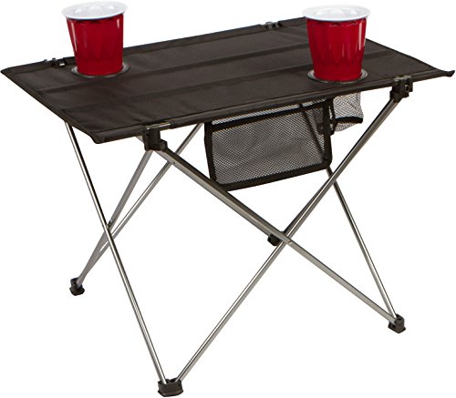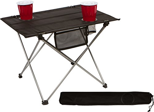 Studio : Trademark Innovations Publisher : Trademark Innovations Binding : Misc. Product Description This table will be an essential part of any camping trip, tailgating party or outside gathering. At 1.3lbs, it is easily portable. The top rolls up and folds into a convenient carry bag and the bottom stand easily folds. The table measures 22"L x 16.5"W x 14.5"H and comes with 2 cup holders. The top is made of heavy duty 1280D polyester with a weather resistant pvc coating amd the metal tubing is aluminum. Weight capacity is 30lbs. By Trademark Innovations. 0