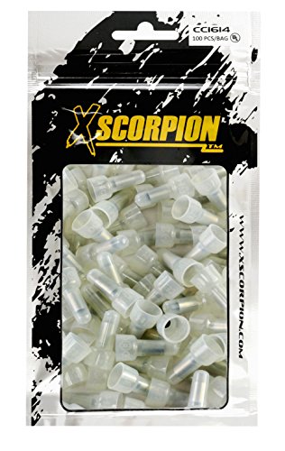 XScorpion CC1614 Closed End Crimp Cap Gauge Wire Connector Terminal 100/Bag, Clear