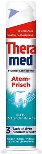 Bis zu 16h Frische - mit Minzgeschmack Gegen Karies, Plaque & Zahnfleischprobleme 3-fach aktiver Rundumschutz Fluorid-Zahncreme Brand : Theramed Item model num : 865952 MPN(PartNumber) : 865952 EAN : 4015000938747