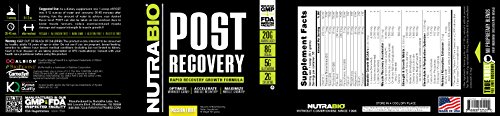 -. Binding : Health and Beauty -. Brand : NutraBio -. EAN : 0649908525200 -. Feature : Scientifically formulated to reduce exercise-induced muscle damage, support rapid recovery and promote muscle strength and growth. / POST optimizes workout gains while reducing recovery time after training and decreasing muscle soreness. / Made in the USA to Strict FDA Standards in our own cGMP Certified Laboratory. / Independent Lab Tested in insure 100% Label Claim and Purity. / Try NutraBio products risk-free! Backed by our 100% Money Back Guarantee! -. IsAdultProduct : 0 -. Label : NutraBio -. LegalDisclaimer : These statements have not been evaluated by the Food and Drug Administration.This product is not intended to diagnose ., treat , cure or prevent any disease. -. Manufacturer : NutraBio -. MPN : 52520 -. PackageQuantity : 1 -. PartNumber : 52520 -. ProductGroup : Health and Beauty -. ProductTypeName : HEALTH_PERSONAL_CARE -. Publisher : NutraBio -. Studio : NutraBio -. Title : NutraBio POST - Workout Muscle Recovery Supplement - 30 Servings (Passion Fruit) -. UPC : 649908525200